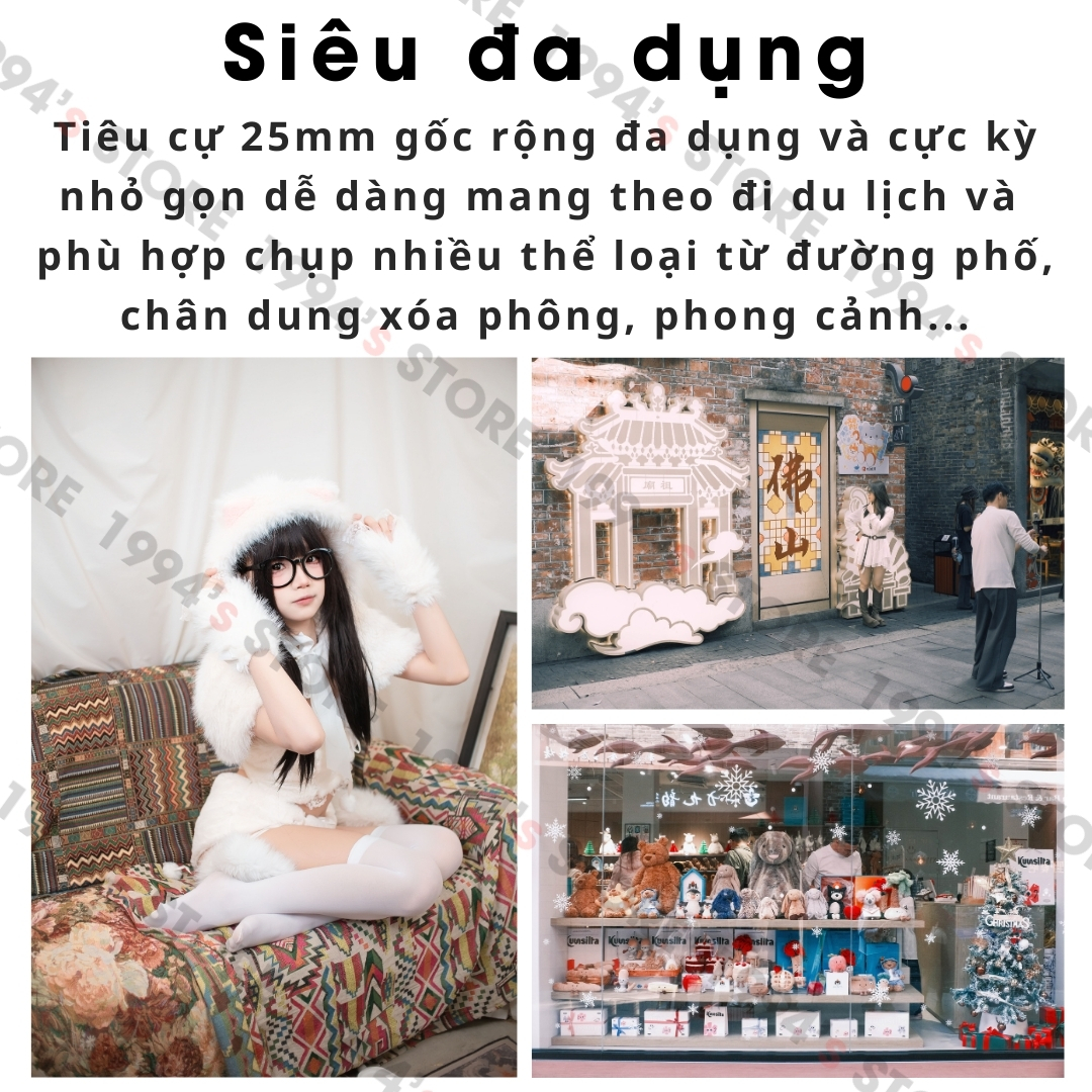 – Tiêu cự 25mm đa dụng và cực kỳ nhỏ gọn dễ dàng mang theo đi du lịch và phù hợp chụp nhiều thể loại từ đường phố, chân dung xóa phông, phong cảnh…