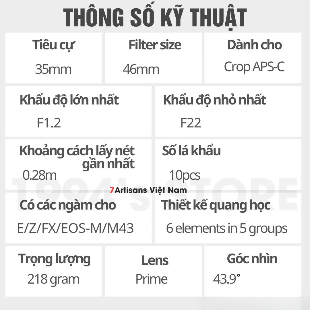 🔥 Sản phẩm được phân phối và bảo hành chính hãng 12 tháng tại 7Artisans Việt Nam 🔥
