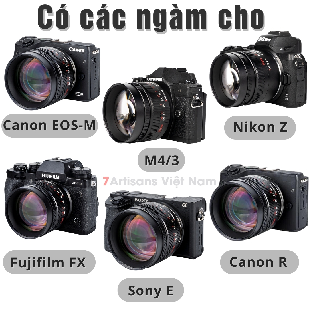 🔵Lens 7Artisans 50mm F0.95 nó tương thích với các ngàm Sony E, Fujifilm X, Canon EOS M, Canon R, Nikon Z và ngàm M4/3