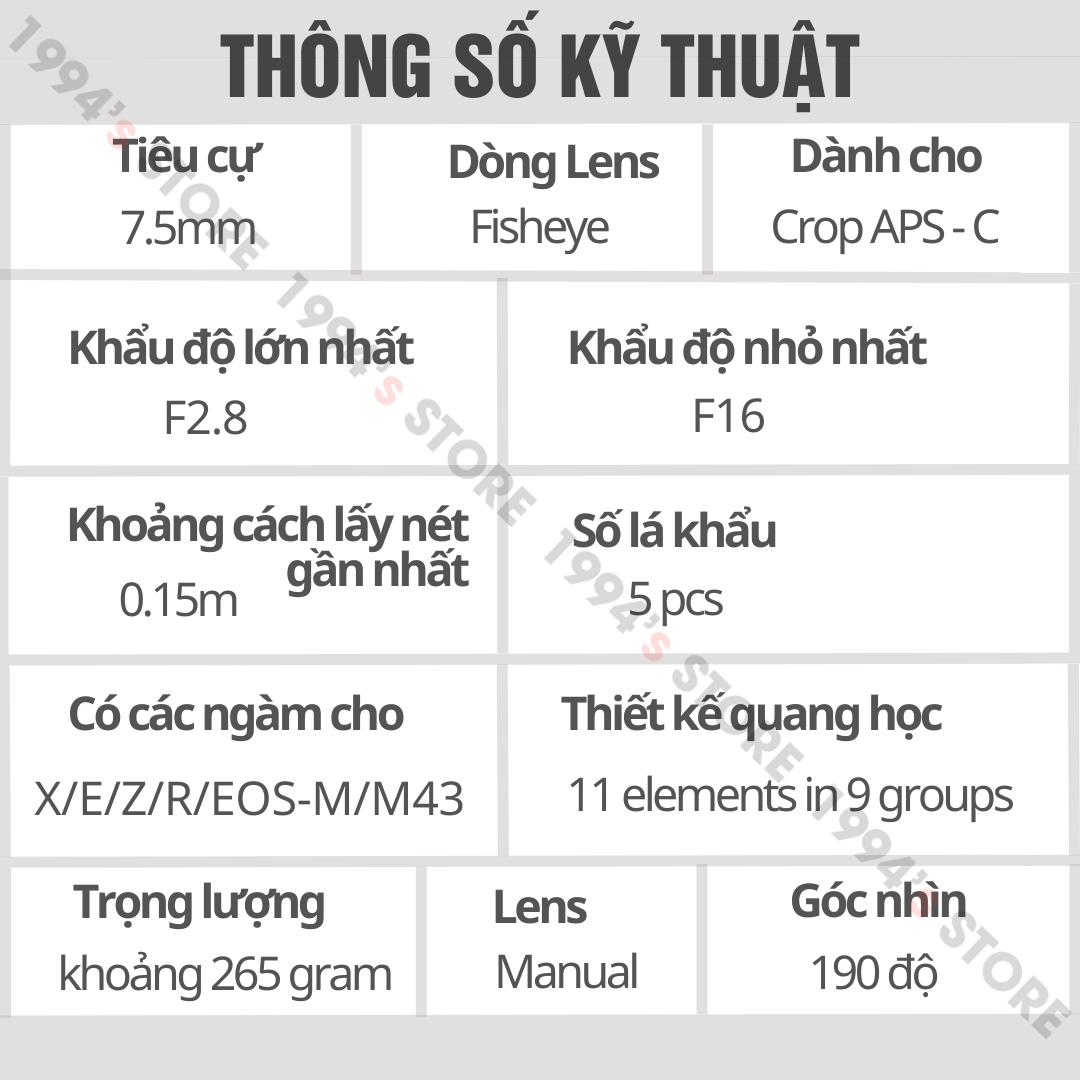 - Tiêu cự: 7.5mm