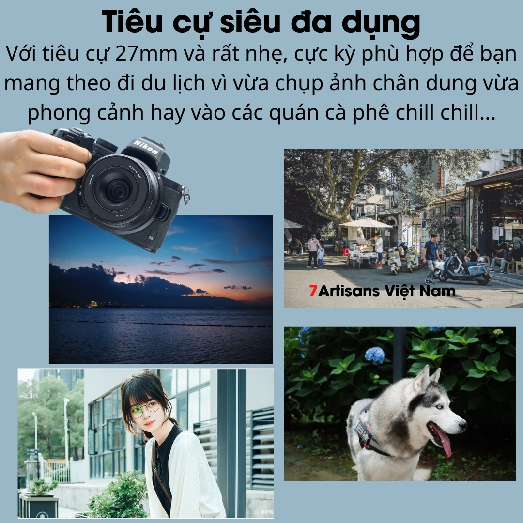 🔵 Với tiêu cự 27mm và rất nhẹ, cực kỳ phù hợp để bạn mang theo đi du lịch vì vừa chụp ảnh chân dung vừa phong cảnh hay vào các quán cà phê chill chill…