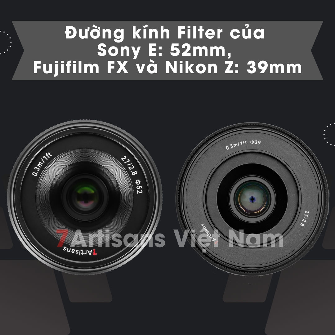 🔵 Đường kính Filter của Sony E: 52mm, Fujifilm FX và Nikon Z: 39mm