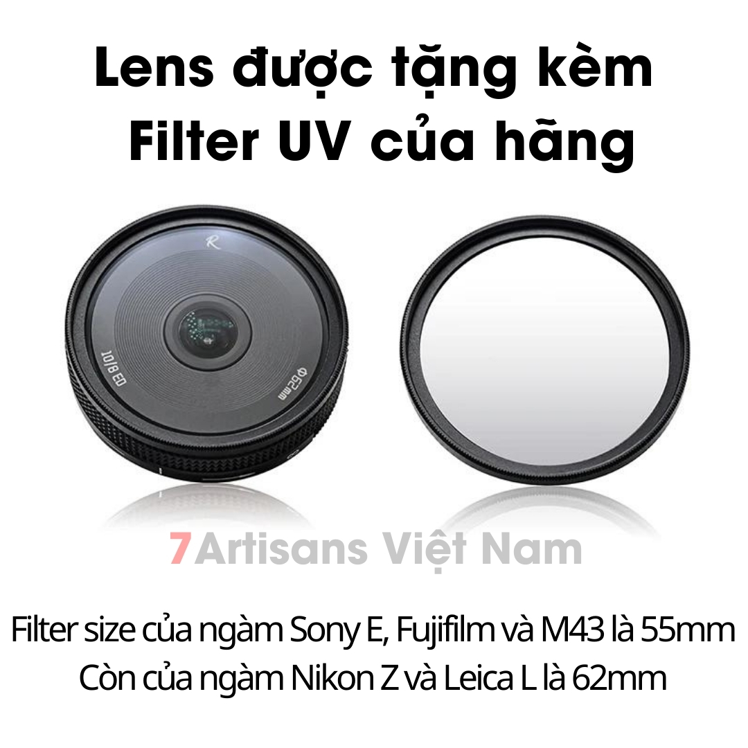 🔵 Filter size của ngàm Sony E, Fujifilm và M43 là 55mm, còn của ngàm Nikon Z và Leica L là 62mm