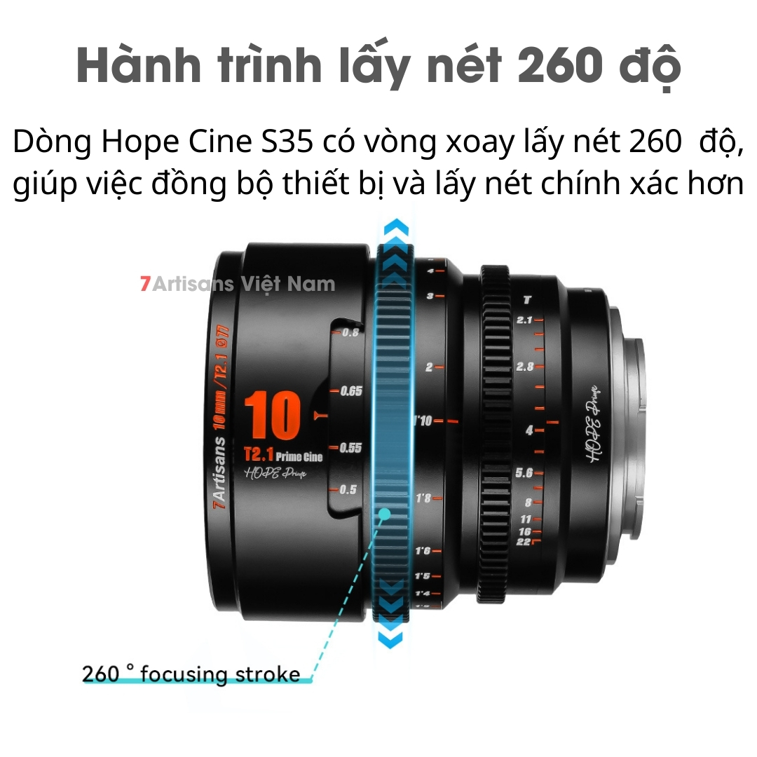 🔵 Dòng Hope Cine S35 có vòng xoay lấy nét 260 độ, giúp việc đồng bộ thiết bị và lấy nét chính xác hơn