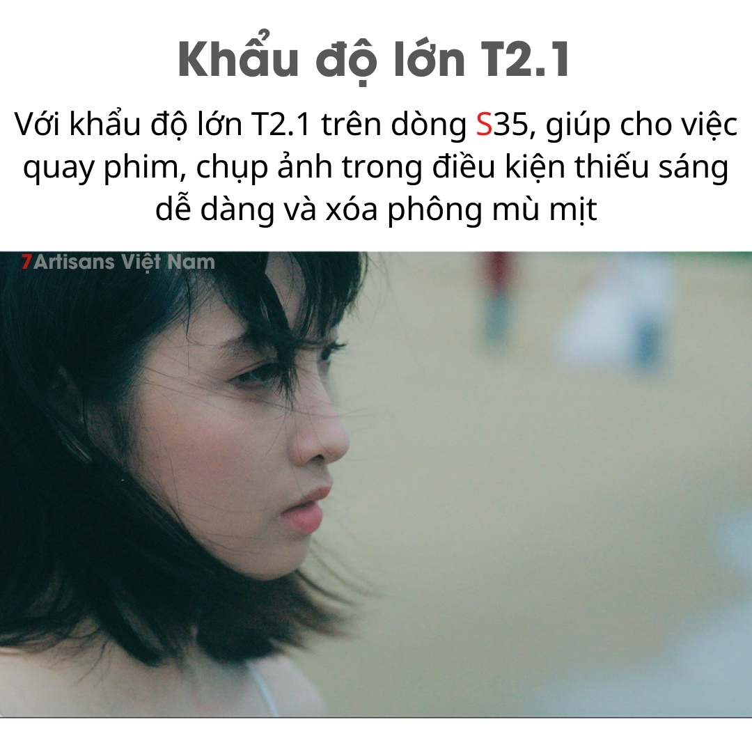 🔵 Với khẩu độ lớn T2.1 trên dòng S35, giúp cho việc quay phim, chụp ảnh trong điều kiện thiếu sáng dễ dàng và xóa phông mù mịt