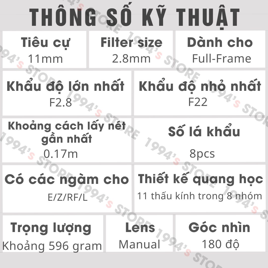 - Tiêu cự: 11mm