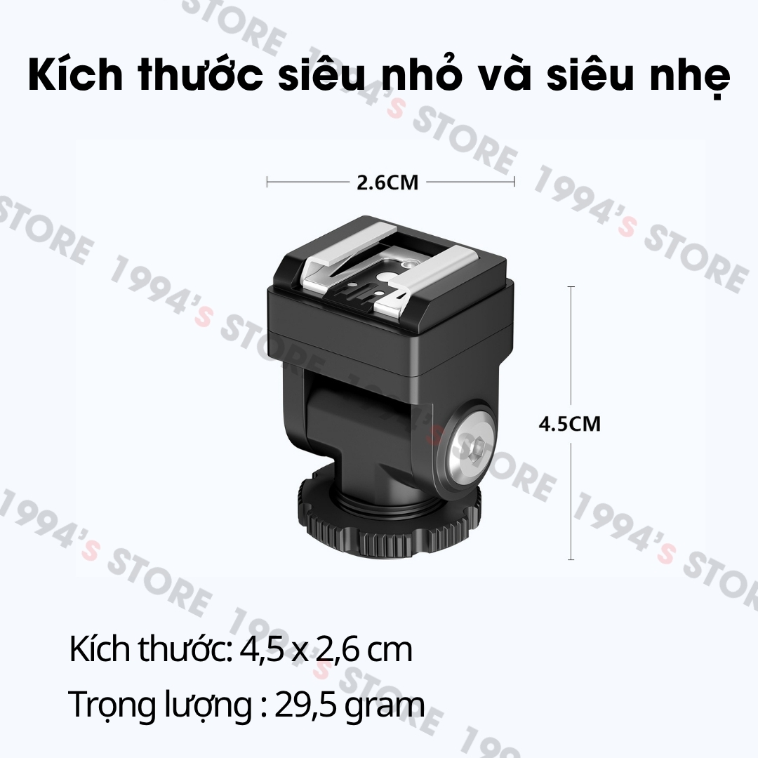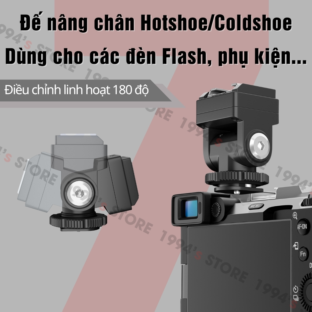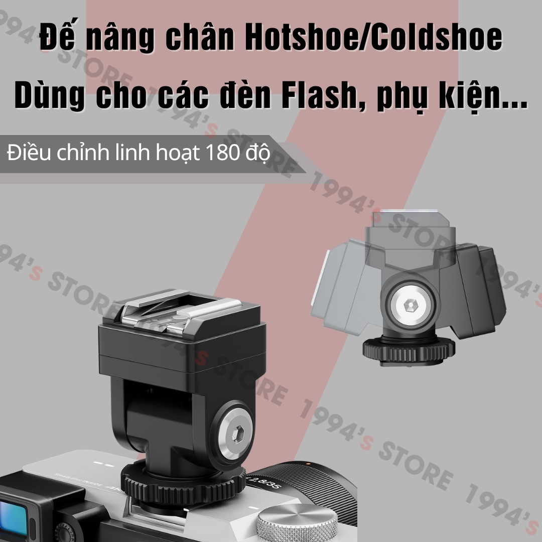 🔥 Đế nâng chân Hotshoe/Coldshoe có thể điều chỉnh linh hoạt 180° giúp bạn khi sử dụng đèn Flash mà dùng các lens zoom, to dài và chụp bị bóng đen do lens che thì đế nâng này sẽ giúp bạn không còn bị tình trạng đó nữa