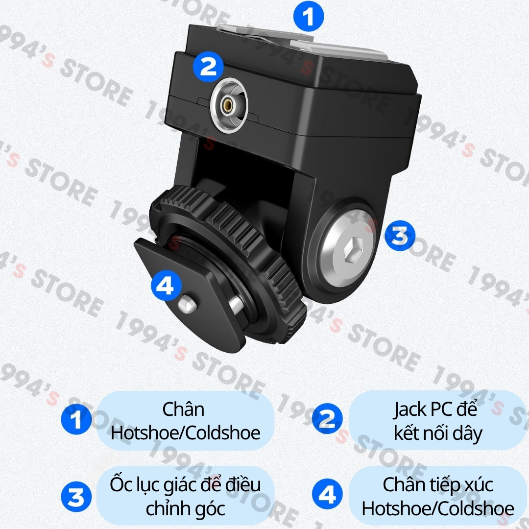 🔵 Đây là chân đế nâng chân Hotshoe nên chưa bao gồm máy ảnh hay đèn Flash