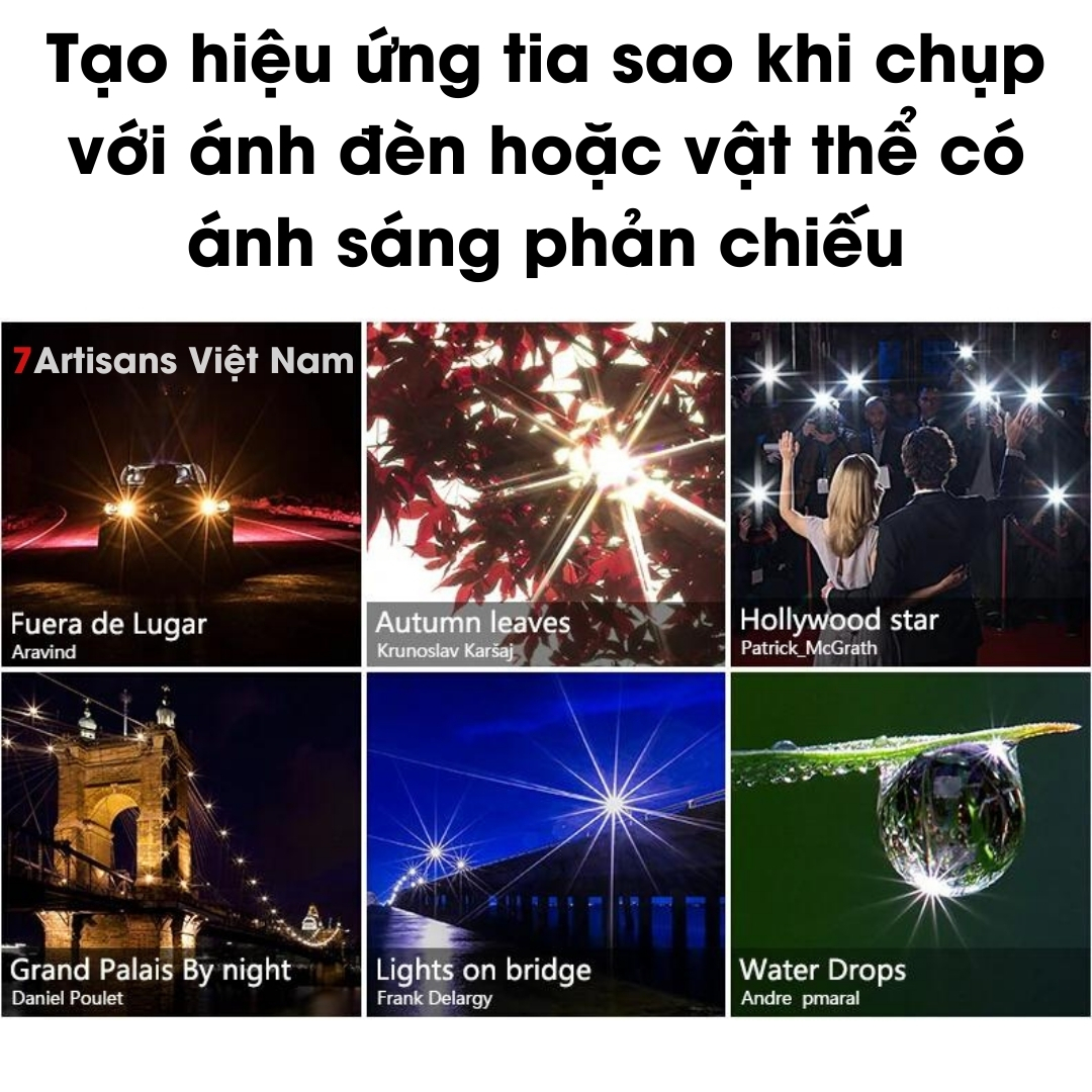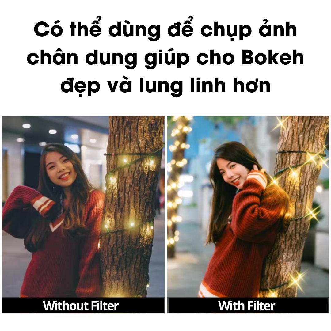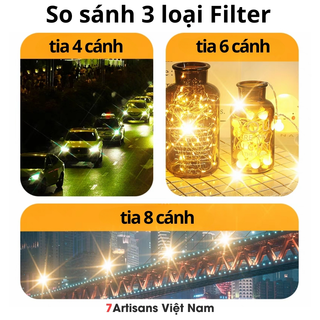 🔵 Filter Star Cross là loại filter hiệu ứng đặc biệt, giúp tạo ra “TIA NGÔI SAO” từ bất kỳ nguồn sáng nào phát ra như ánh nến, ánh đèn của các cây cầu, các tòa nhà, đèn xe và đèn đường, mặt nước, trang sức, kim cương, đá quý…. Đồng thời kính lọc này làm giảm thiểu hiện tượng bóng ma và lóe sáng được gây ra bởi các nguồn sáng.