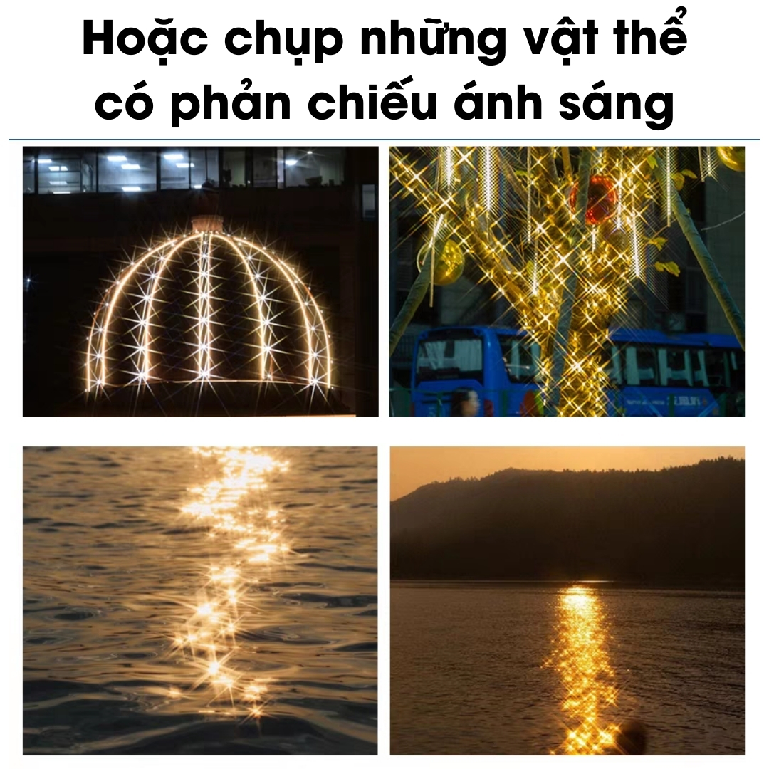 🔵 Đây là Filter rất lý tưởng cho việc chụp cảnh đêm và các khung cảnh có sự phản chiếu ánh sáng mạnh hoặc các bạn nữ có đeo trang sức hoặc các đồ vật khác có độ phản chiếu mạnh. Cho phép chụp ảnh với phong cách sáng tạo lung linh