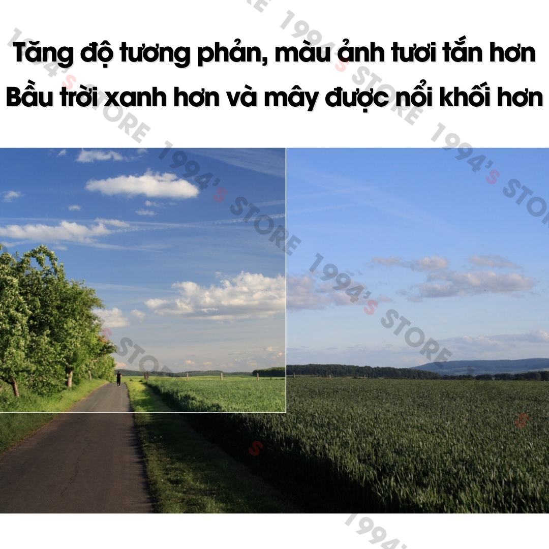 🔵 Tăng độ bão hòa màu sắc: Bằng cách loại bỏ phản xạ ánh sáng, CPL làm cho màu sắc trở nên đậm đà và sống động hơn. Ví dụ, bầu trời sẽ xanh hơn, và màu xanh của lá cây sẽ rực rỡ hơn.
