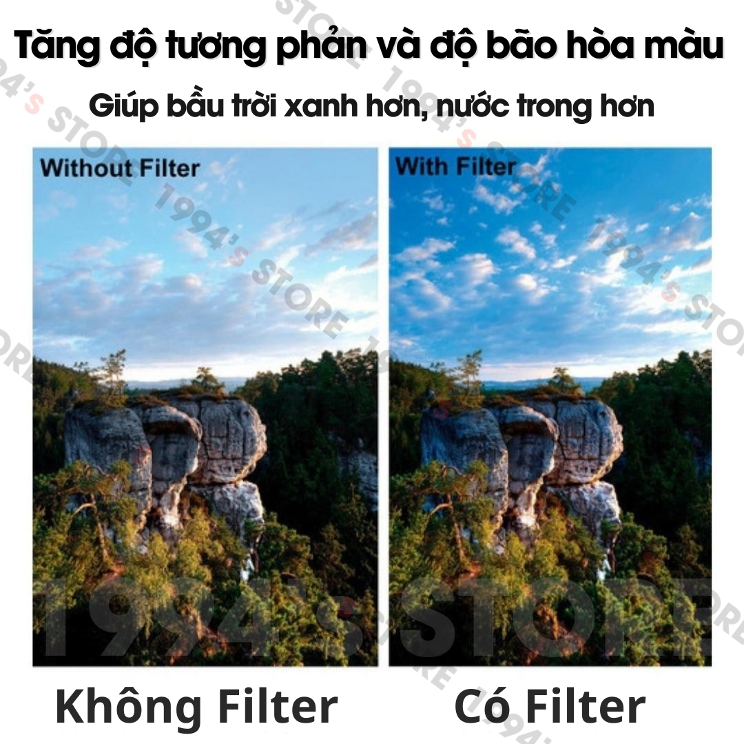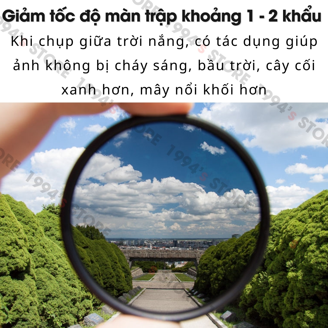 – Khi chụp giữa trời nắng, có tác dụng giúp ảnh không bị cháy sáng, bầu trời, cây cối xanh hơn, mây nổi khối hơn