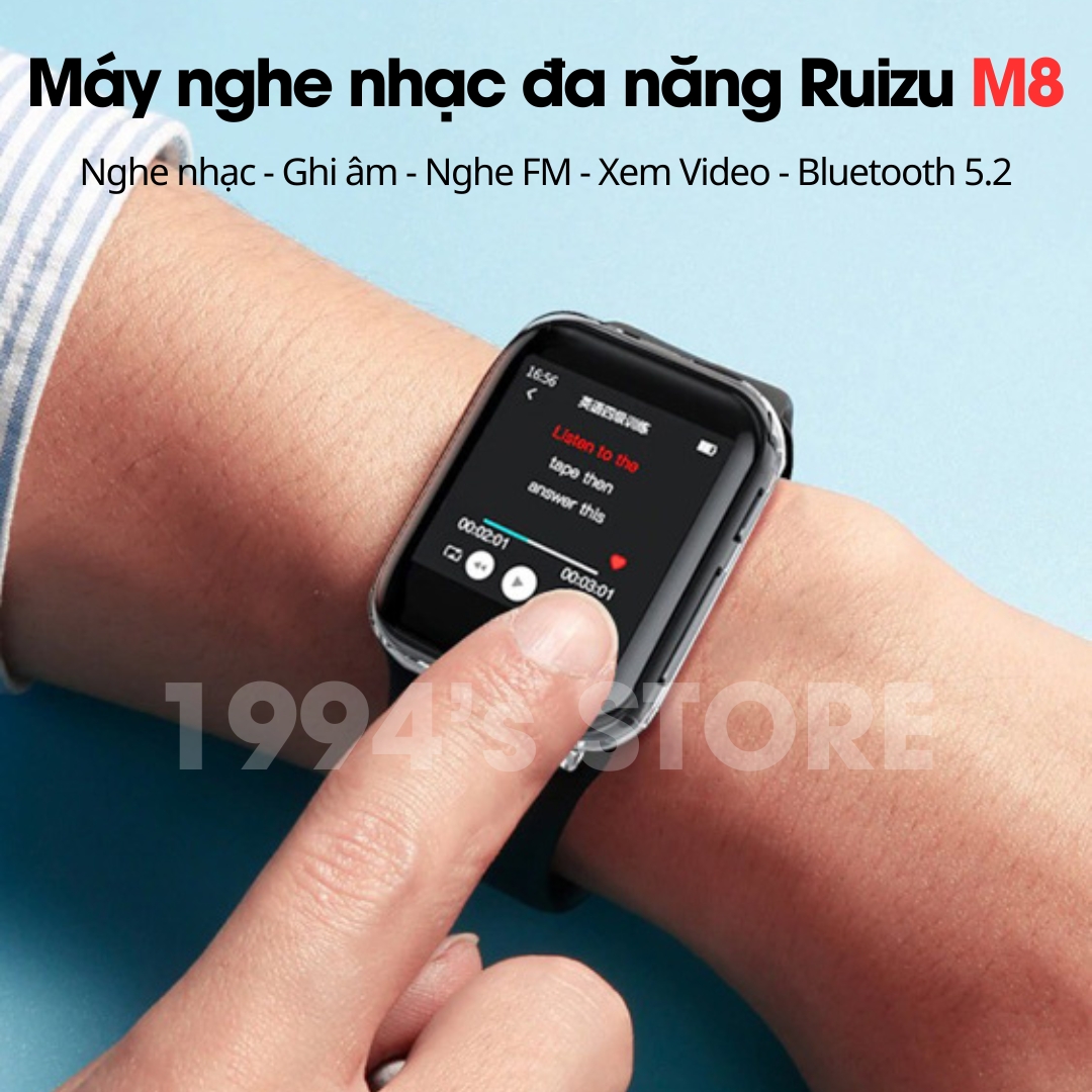 🔥 Máy nghe nhạc Ruizu M8 phiên bản mới 2025 với nhiều nâng cấp: Bluetooth 5.2, bộ nhớ trong 16Gb, chui sạc Type C, tích hợp kiểu dáng đồng hồ đeo tay cảm ứng đa tính năng 🔥