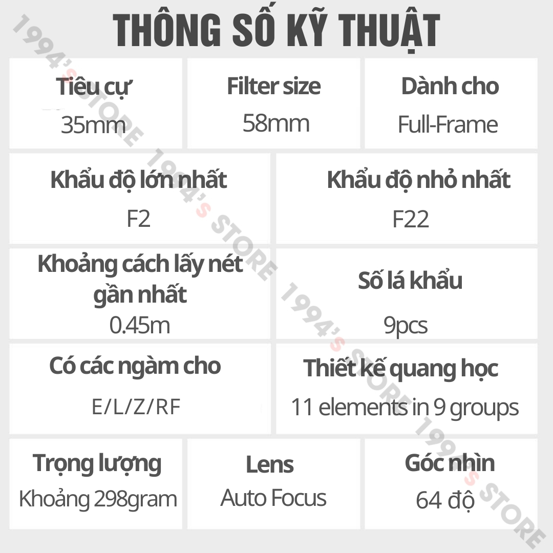 - Tiêu cự: 35mm
