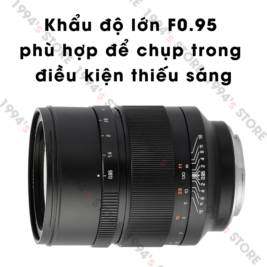 🔵 Khẩu độ lớn F0.95 phù hợp để chụp trong điều kiện thiếu sáng