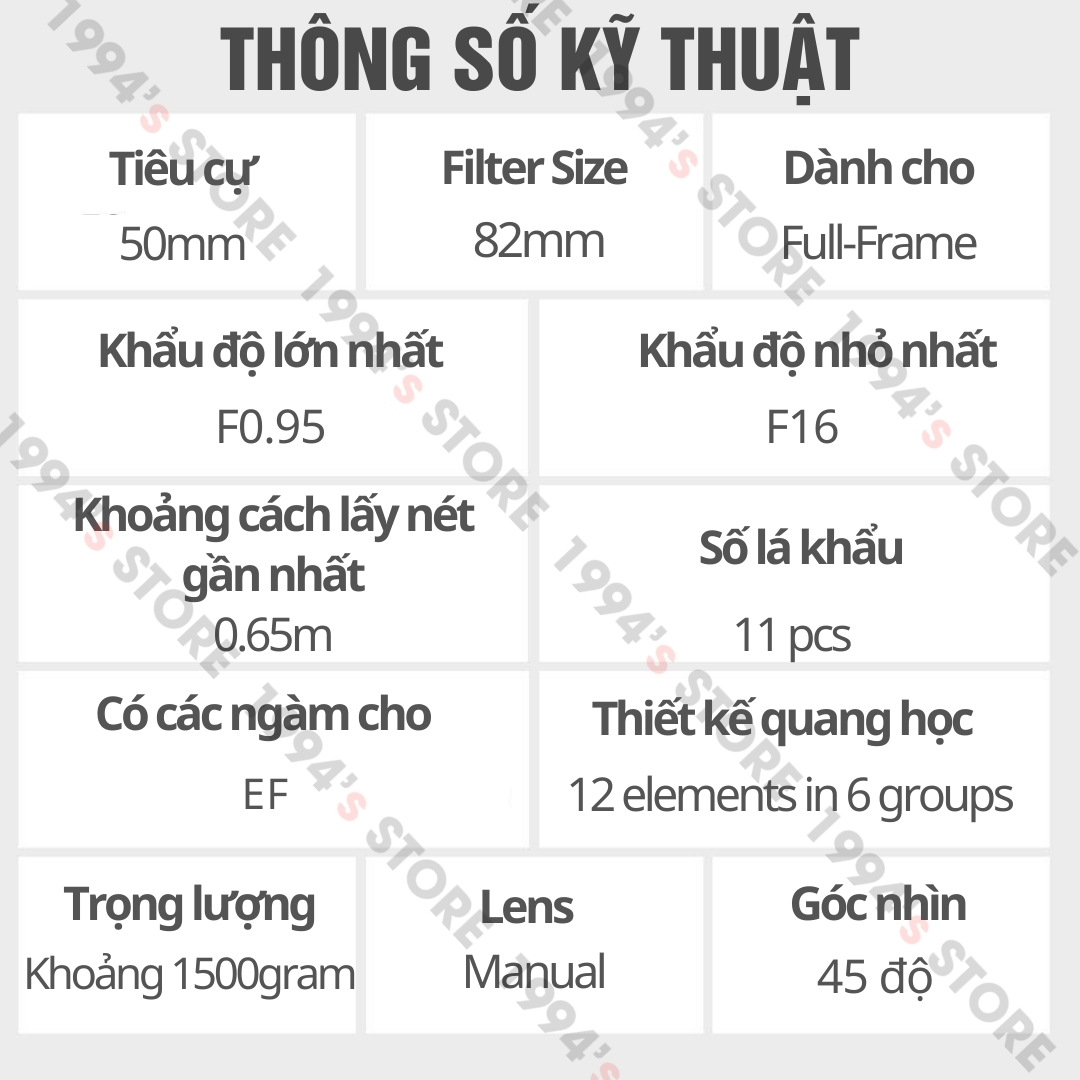 - Tiêu cự: 50mm