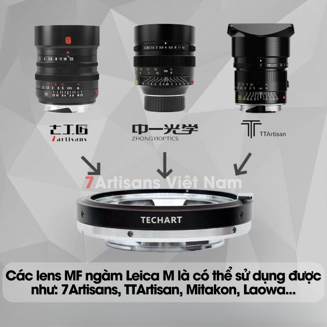 🔵 Nếu bạn sử dụng các lens MF ngàm khác Leica M thì bạn có thể mua ngàm chuyển từ ngàm đó sang ngàm Leica M và sử dụng ngàm Techart LM-EA9 này để thành lens AF có lấy nét tự động và lấy nét rất nhanh. Ví dụ: Bạn có lens ngàm Leica R, chỉ cần mua ngàm chuyển sang Leica M và sử dụng ngàm Techart LM-EA9 này được dễ dàng