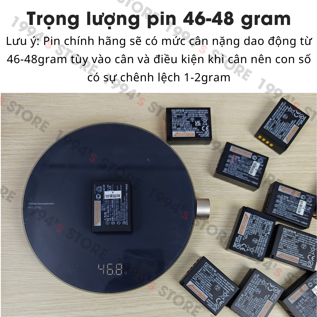 – Lưu ý: Pin chính hãng sẽ có mức cân nặng dao động từ 46-48gram tùy vào cân và điều kiện khi cân nên con số có sự chênh lệch 1-2gram