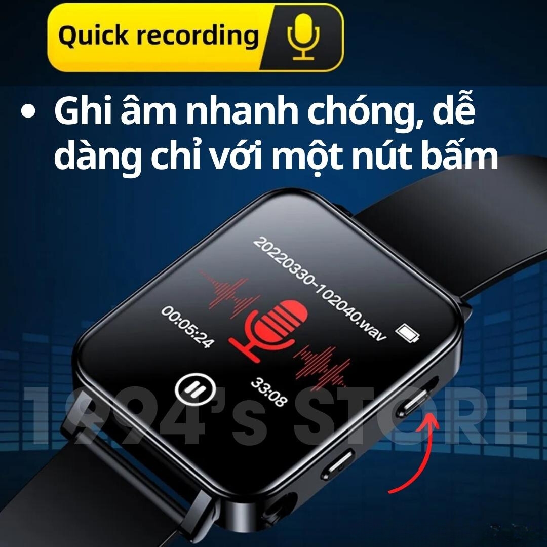 🔥 BENJIE A80 – Máy nghe nhạc với thiết kế là đồng hồ đeo tay, được trang bị 2 Micro ghi âm, bộ lọc khử tiếng ồn DSP giúp cho bạn có thể ghi âm các cuộc hội thoại 1 cách kín đáo và vô cùng an toàn 🔥