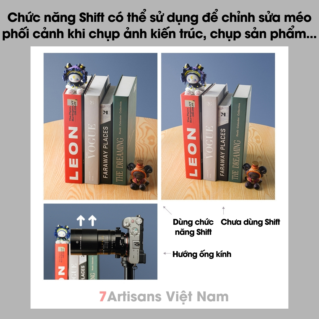 🔵 Phối cảnh đúng đắn : Chức năng Shift (Dịch chuyển) có thể được sử dụng để sửa méo phối cảnh trong chụp ảnh kiến trúc, chụp ảnh sản phẩm và chụp ảnh sáng tạo khác