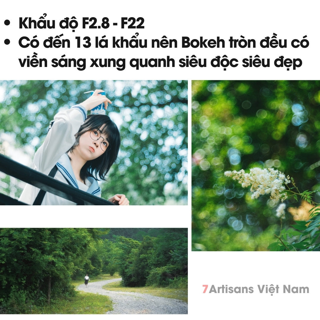 🔵 Có đến 13 lá khẩu nên Bokeh tròn đều có viền sáng xung quanh siêu độc siêu đẹp