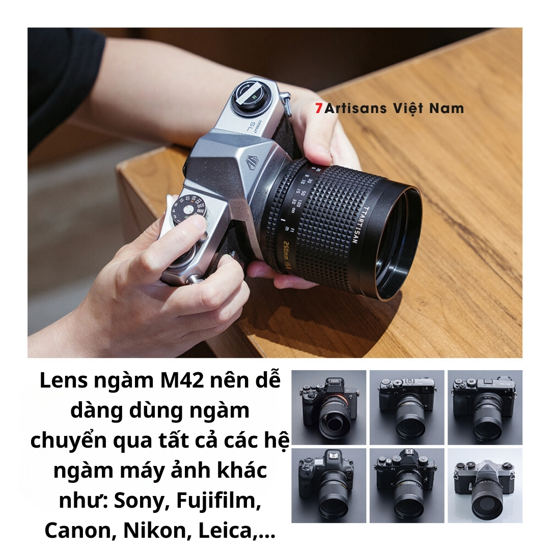 🔵 Lens ngàm M42 nên dễ dàng dùng các ngàm chuyển sang các ngàm ống kính khác như Sony, Fujifilm, Canon, Nikon, Leica,…. với giá chỉ khoảng 100-200k