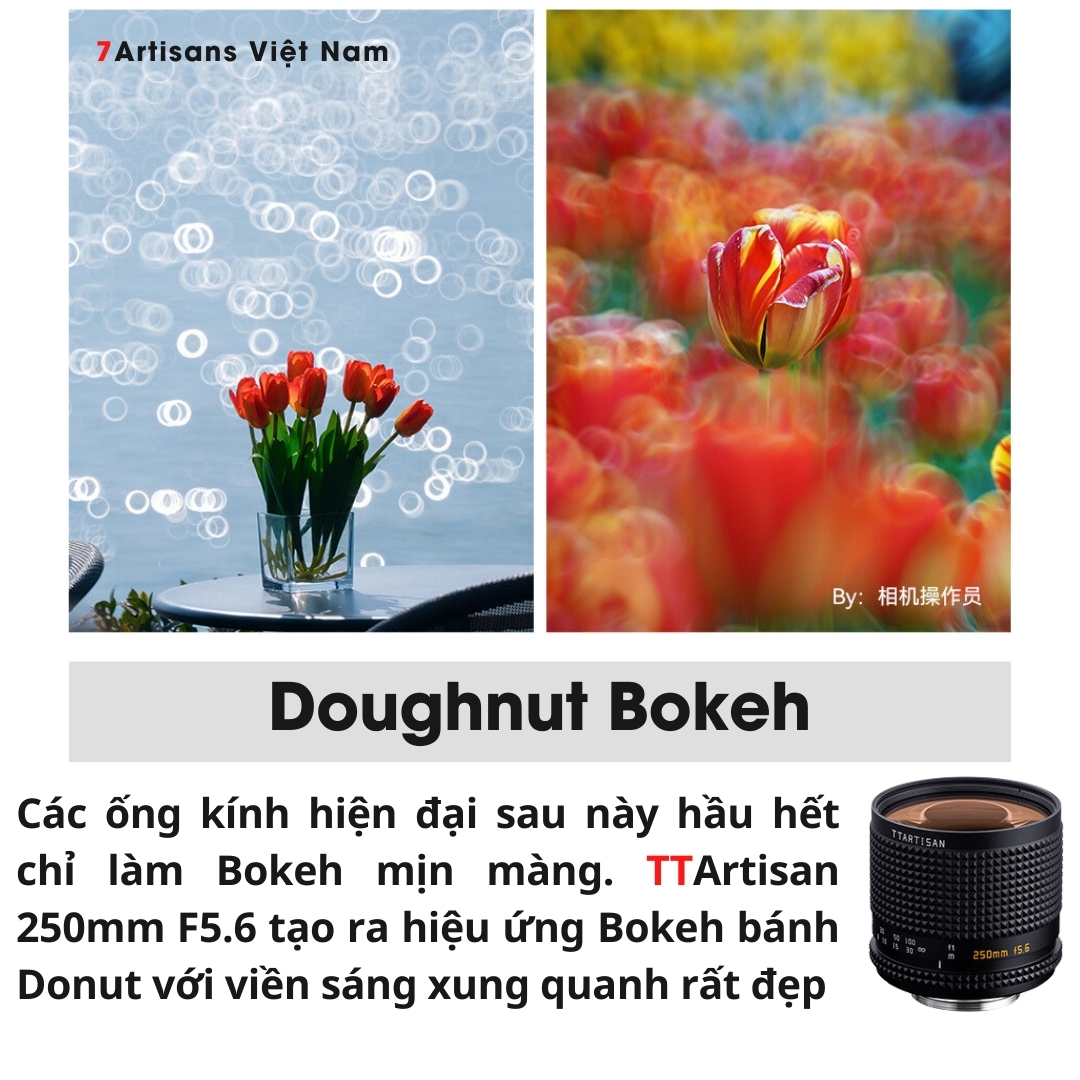 🔵 Các ống kính hiện đại sau này hầu hết chỉ làm Bokeh mịn màng. TTArtisan 250mm F5.6 tạo ra hiệu ứng Bokeh bánh Donut với viền sáng xung quanh rất đẹp