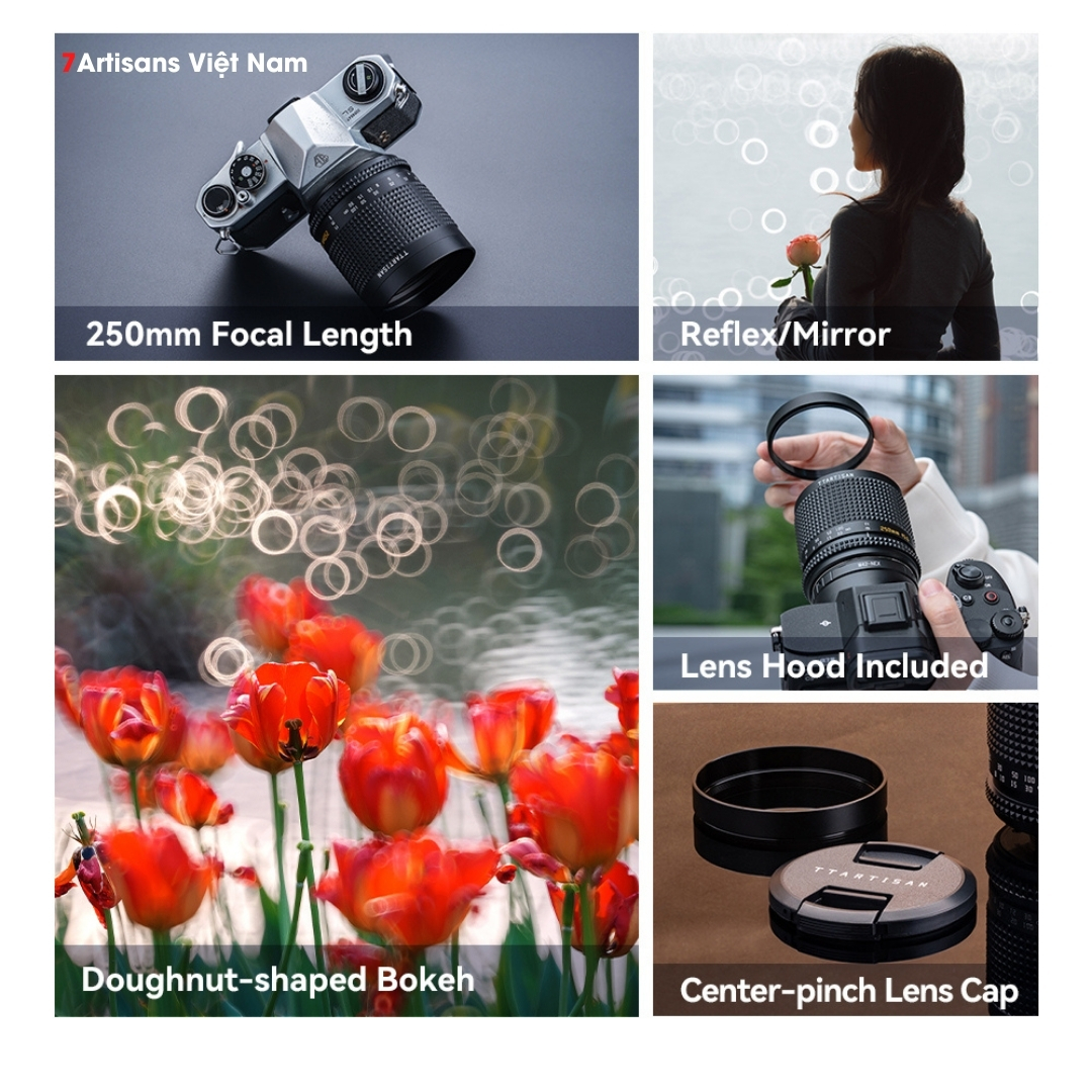 🔵 Ống kính TTArtisan 250mm F5.6 Reflex Doughnut Bokeh được thiết kế riêng để chụp những bức chân dung quyến rũ, nổi bật với hiệu ứng bokeh đặc biệt và cảm giác quyến rũ, hoài cổ