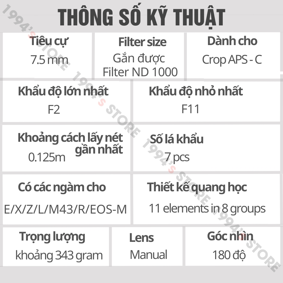🔥 Sản phẩm được phân phối và bảo hành chính hãng 12 tháng tại 7Artisans Việt Nam và 1994’s STORE 🔥