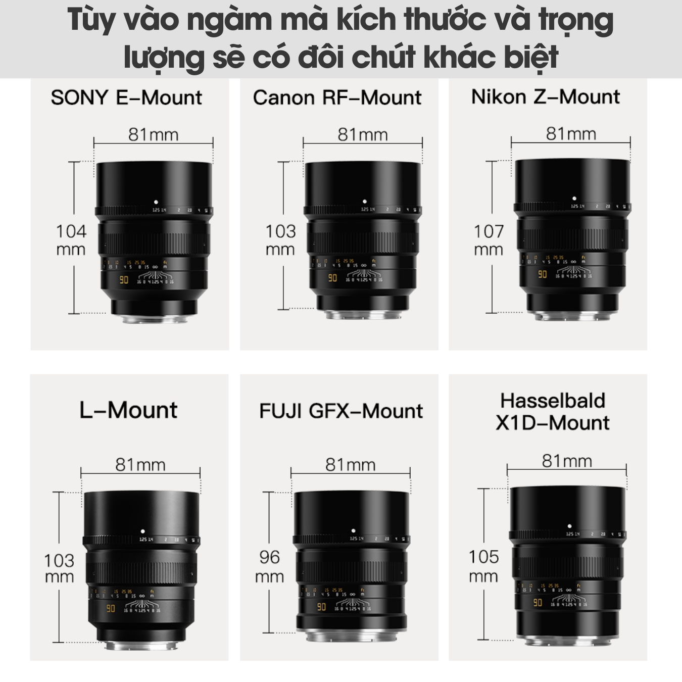 🔵 Lens có ngàm cho Leica M, SONY E-mount, Nikon Z-mount, Canon RF-mount, Fujifilm GFX-mount, Leica L-mount, HASSELBLAD X1D, thiết kế và trọng lượng của lens sẽ khác nhau 1 chút..