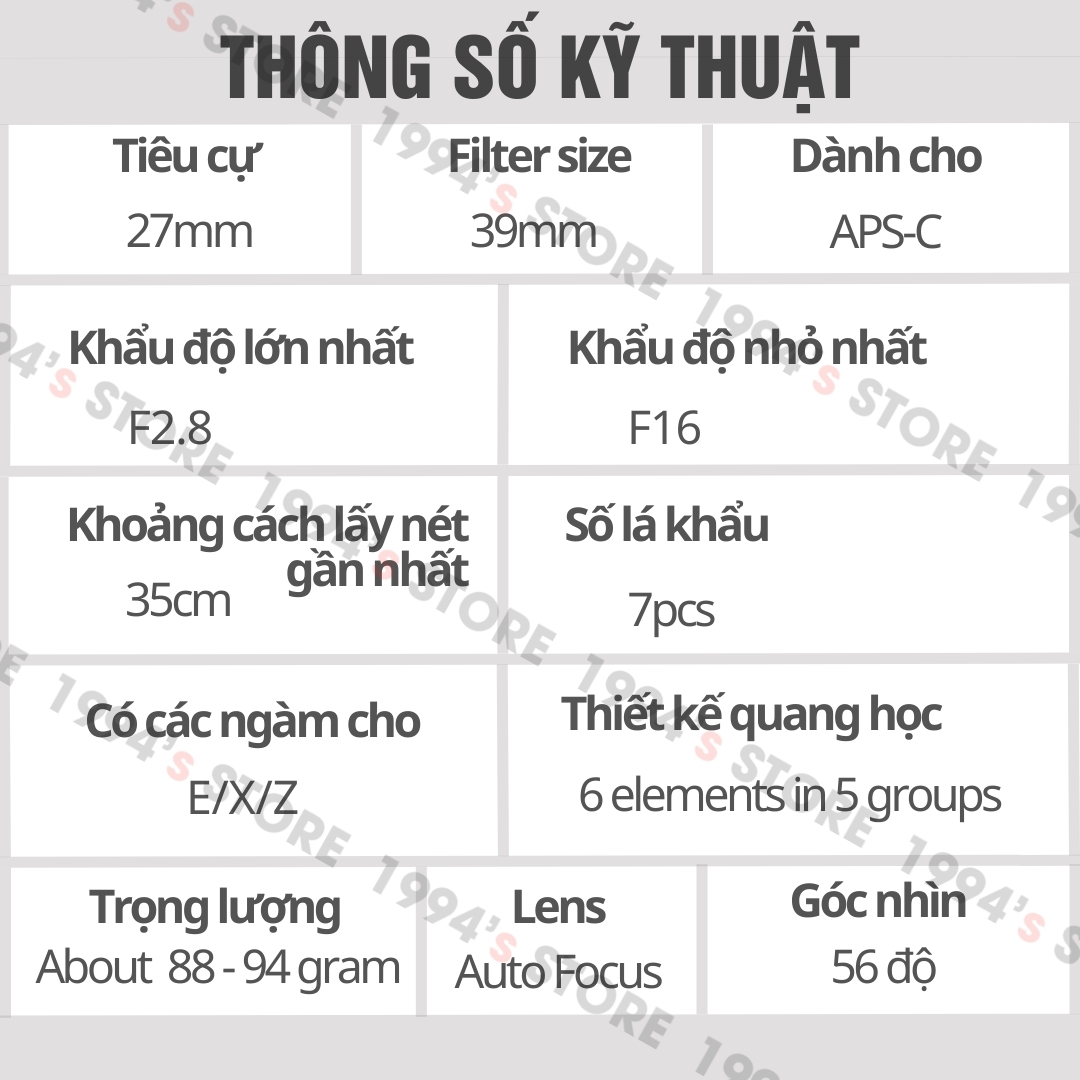 - Tiêu cự: 27mm