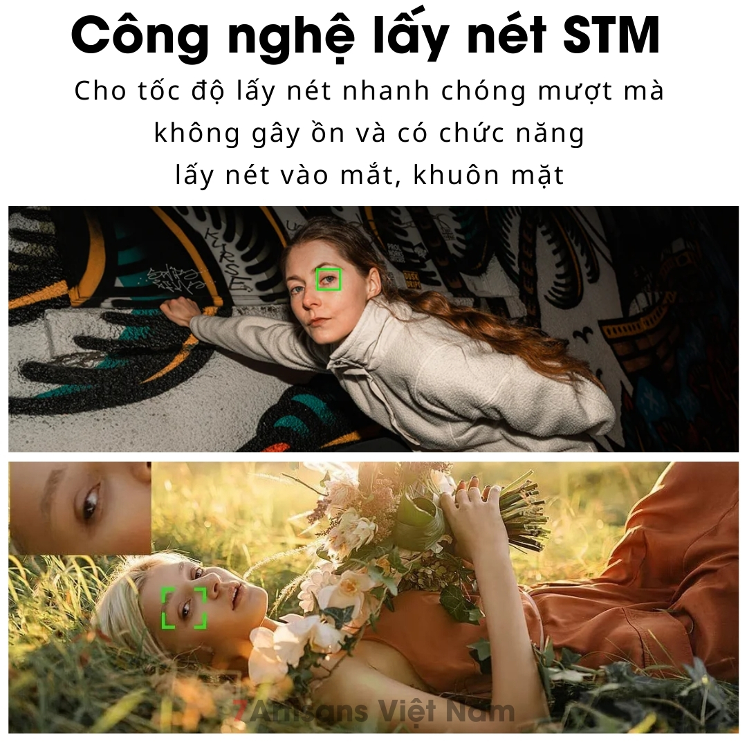 🔵 Công nghệ lấy nét STM cho tốc độ lấy nét nhanh chóng mượt mà không gây ồn và có chức năng lấy nét vào mắt, khuôn mặt