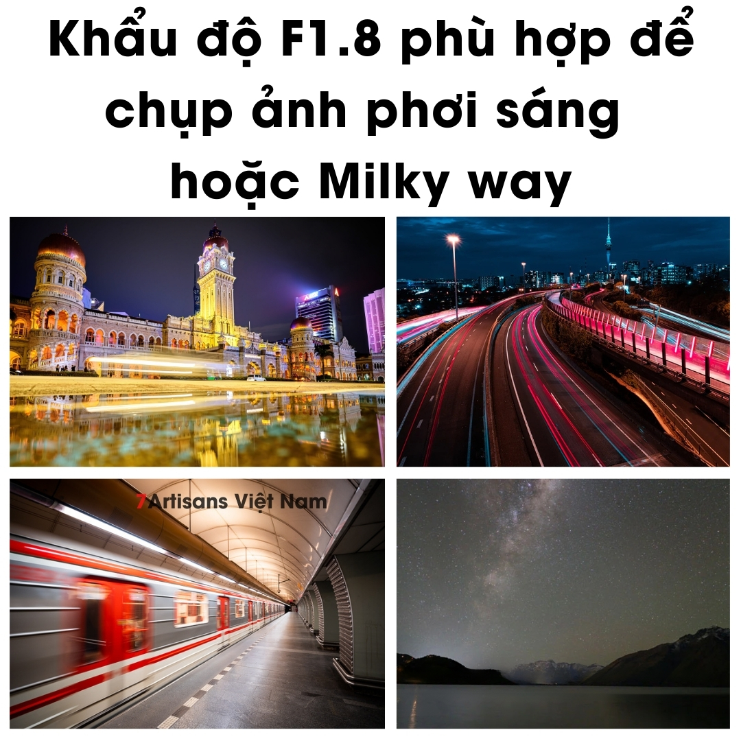 🔵 Khẩu độ F1.8 phù hợp để chụp ảnh phơi sáng hoặc Milky way