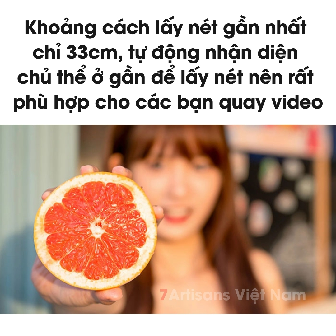 🔵 Khoảng cách lấy nét gần nhất chỉ 33cm, tự động nhận diện chủ thể ở gần để lấy nét nên rất phù hợp cho các bạn quay video