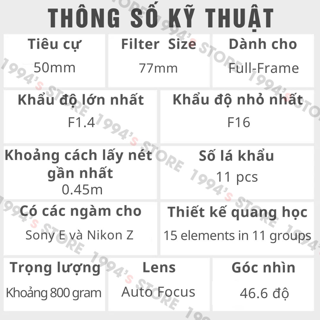 - Tiêu cự: 50mm