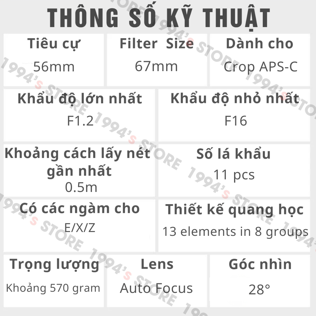 - Tiêu cự: 56mm