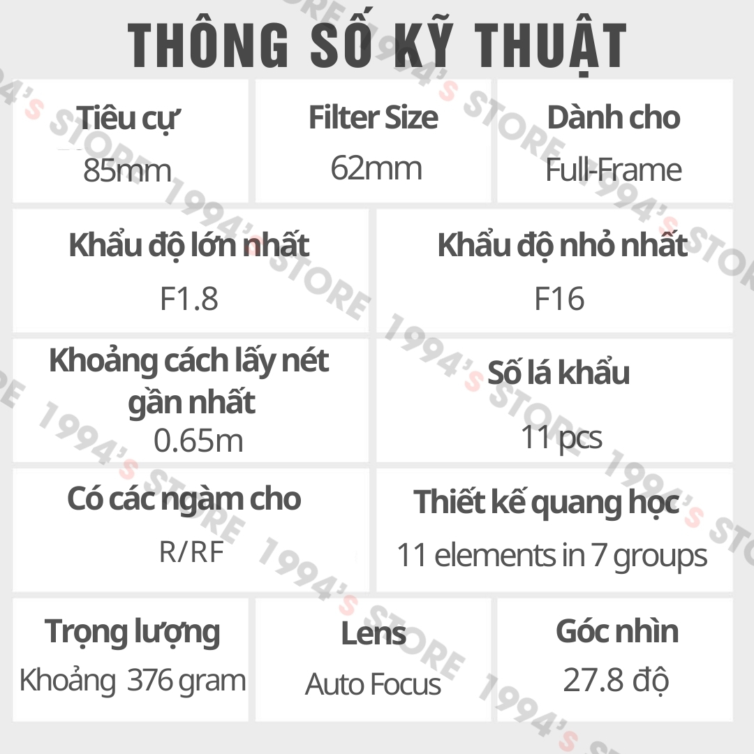 - Tiêu cự: 85mm