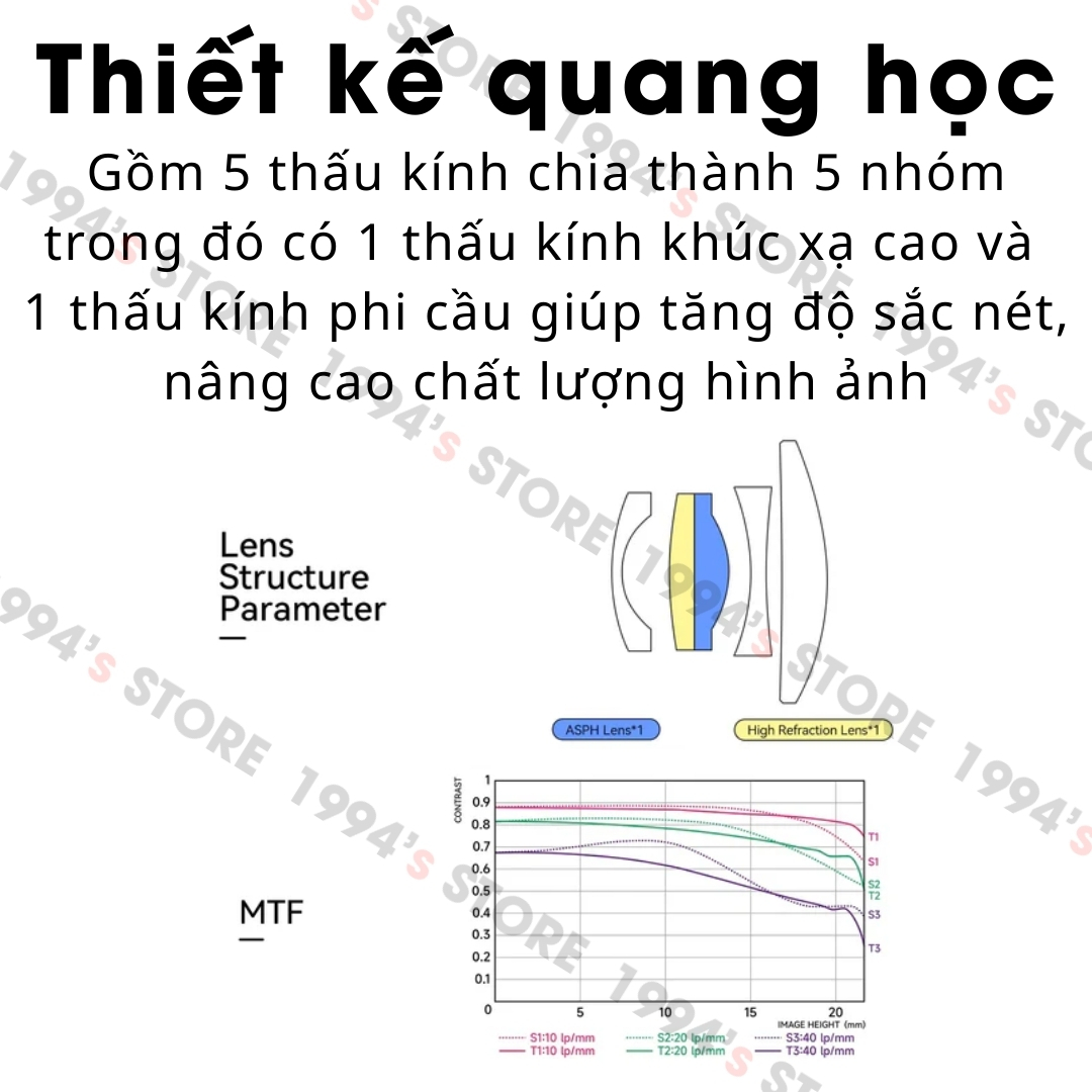 🔵 Gồm 5 thấu kính chia thành 5 nhóm trong đó có 1 thấu kính khúc xạ cao và 1 thấu kính phi cầu giúp tăng độ sắc nét, nâng cao chất lượng hình ảnh