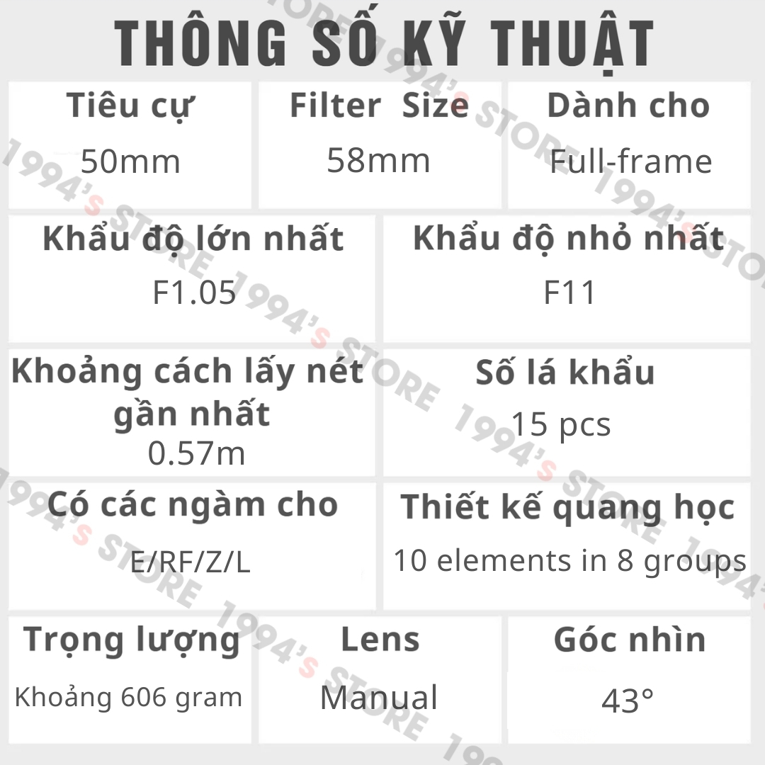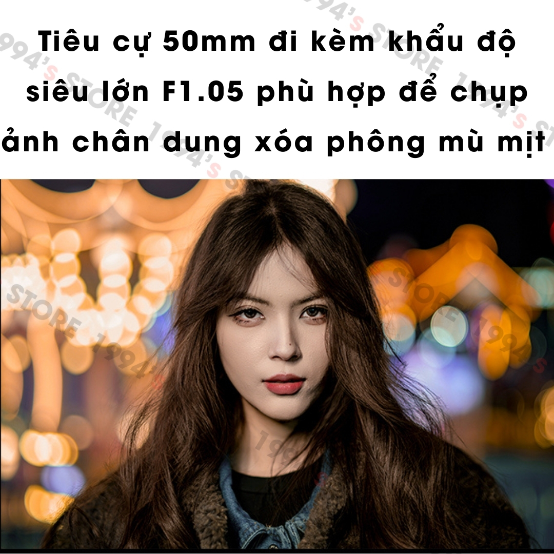 🔵 Tiêu cự 50mm đi kèm khẩu độ siêu lớn F1.05 phù hợp để chụp ảnh chân dung xóa phông mù mịt