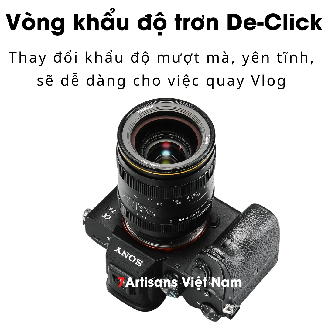 🔵 Vòng khẩu độ trơn De-Click thay đổi khẩu độ mượt mà, yên tĩnh, sẽ dễ dàng cho việc quay phim