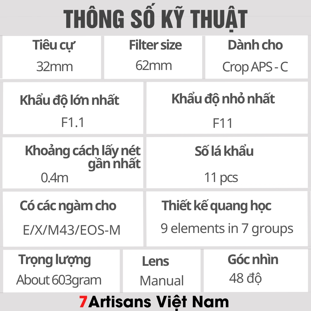 🔥 Sản phẩm được phân phối và bảo hành chính hãng 12 tháng tại 7Artisans Việt Nam