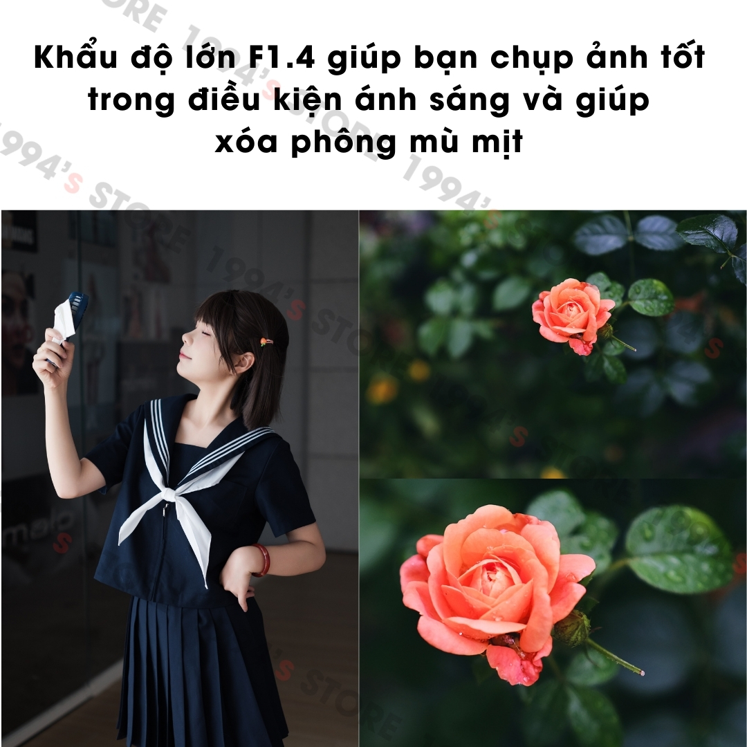 🔵 Khẩu độ lớn F1.4 giúp bạn chụp ảnh tốt trong điều kiện ánh sáng yếu và giúp xóa phông mù mịt