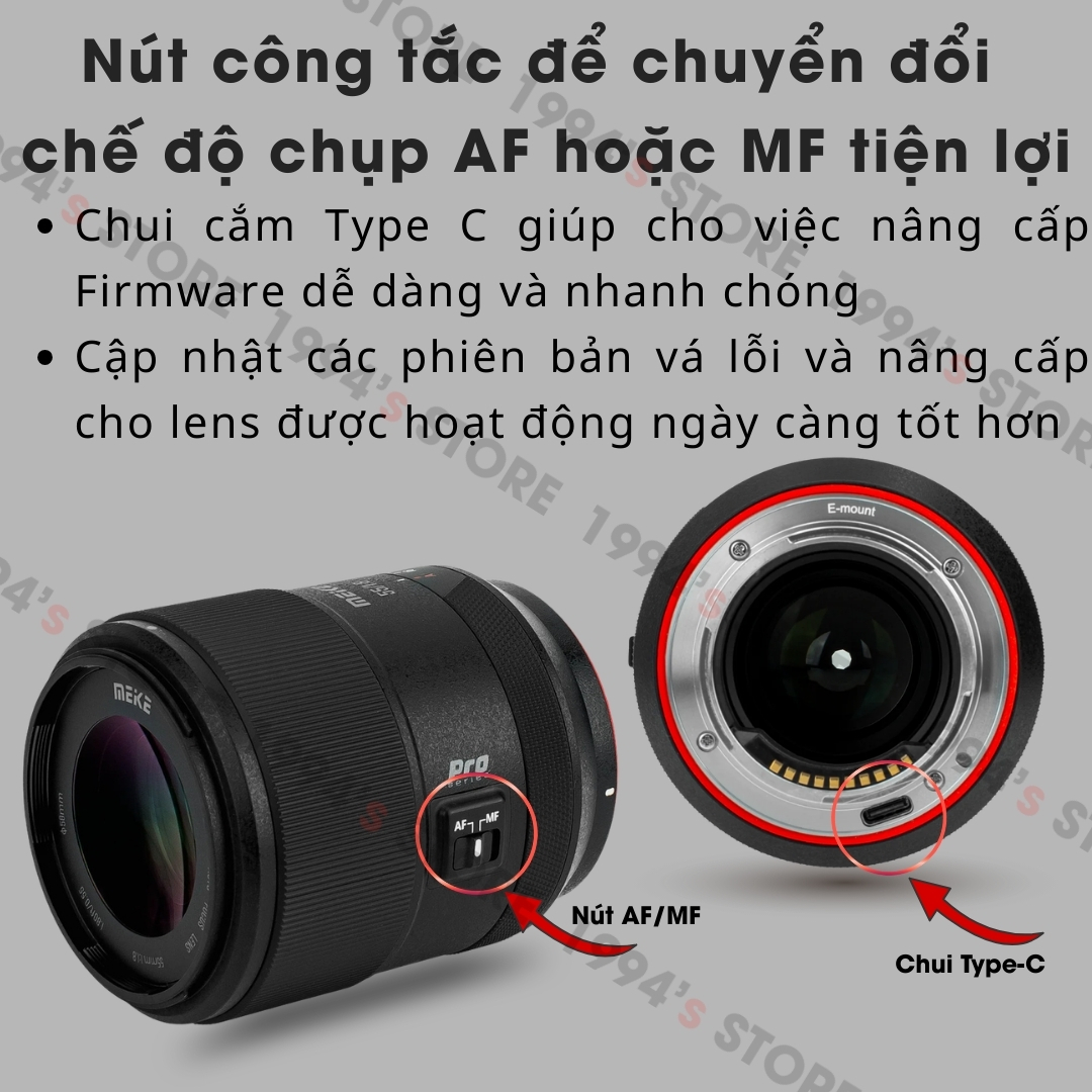 🔵 Nút công tắc để chuyển đổi chế độ chụp AF hoặc MF tiện lợi Chui cắm Type C giúp cho việc nâng cấp Firmware dễ dàng và nhanh chóng cập nhật các phiên bản vá lỗi và nâng cấp cho lens được hoạt động ngày càng tốt hơn