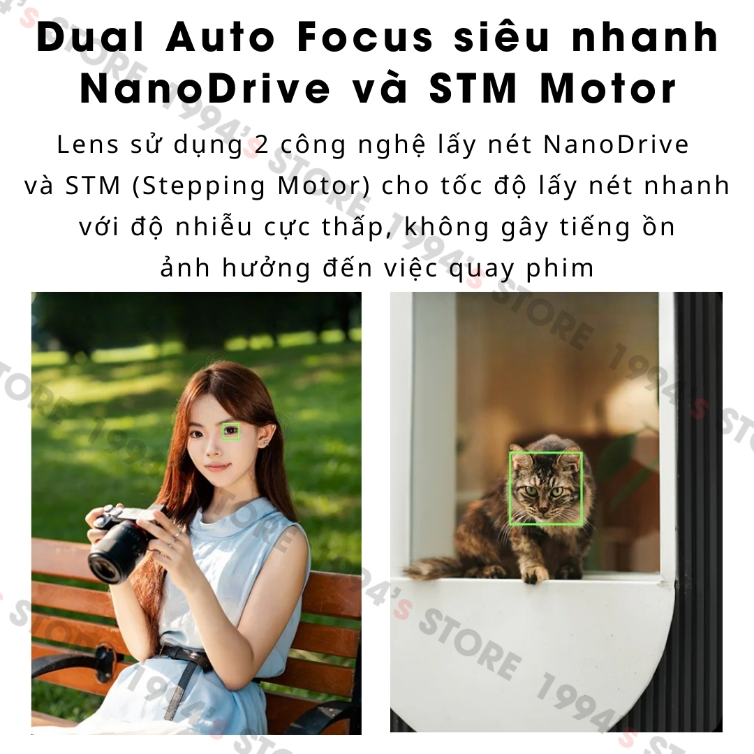 🔵 Công nghệ Dual Auto Focus siêu nhanh NanoDrive và STM Motor. Lens sử dụng 2 công nghệ lấy nét NanoDrive và STM (Stepping Motor) cho tốc độ lấy nét nhanh với độ nhiễu cực thấp, không gây tiếng ồn ảnh hưởng đến việc quay phim