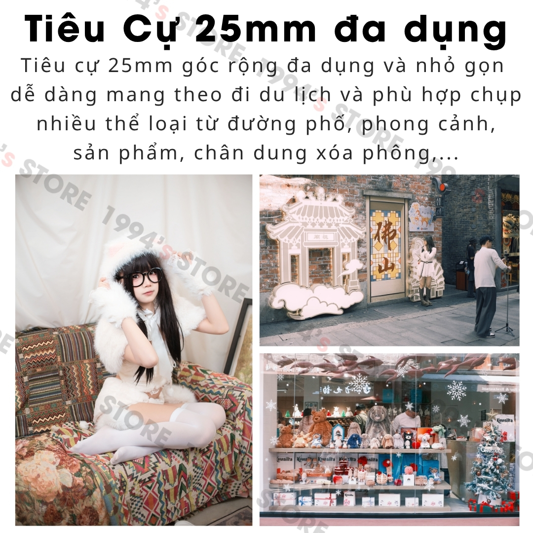 🔵 Tiêu cự 25mm góc rộng đa dụng và nhỏ gọn dễ dàng mang theo đi du lịch và phù hợp chụp nhiều thể loại từ đường phố, phong cảnh, sản phẩm, chân dung xóa phông,...