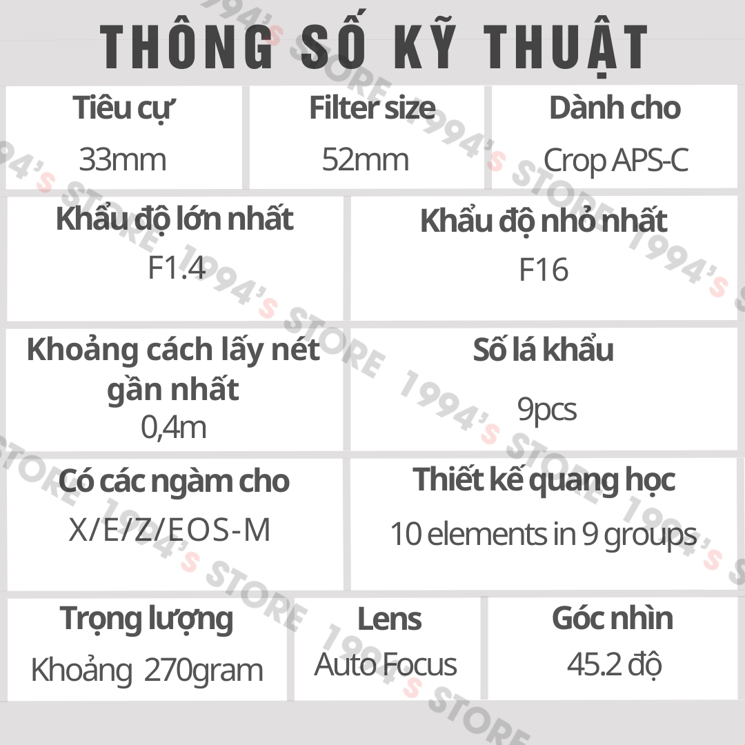 - Tiêu cự: 33mm