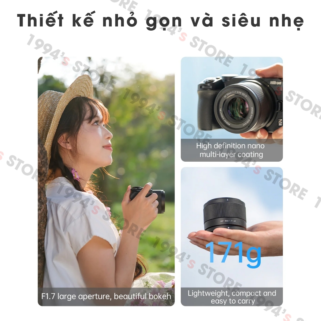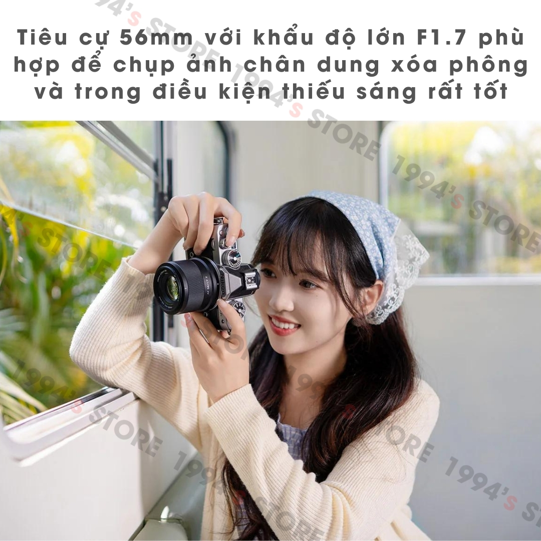 🔵 Tiêu cự 56mm với khẩu độ lớn F1.7 phù hợp để chụp ảnh chân dung xóa phông và trong điều kiện thiếu sáng rất tốt